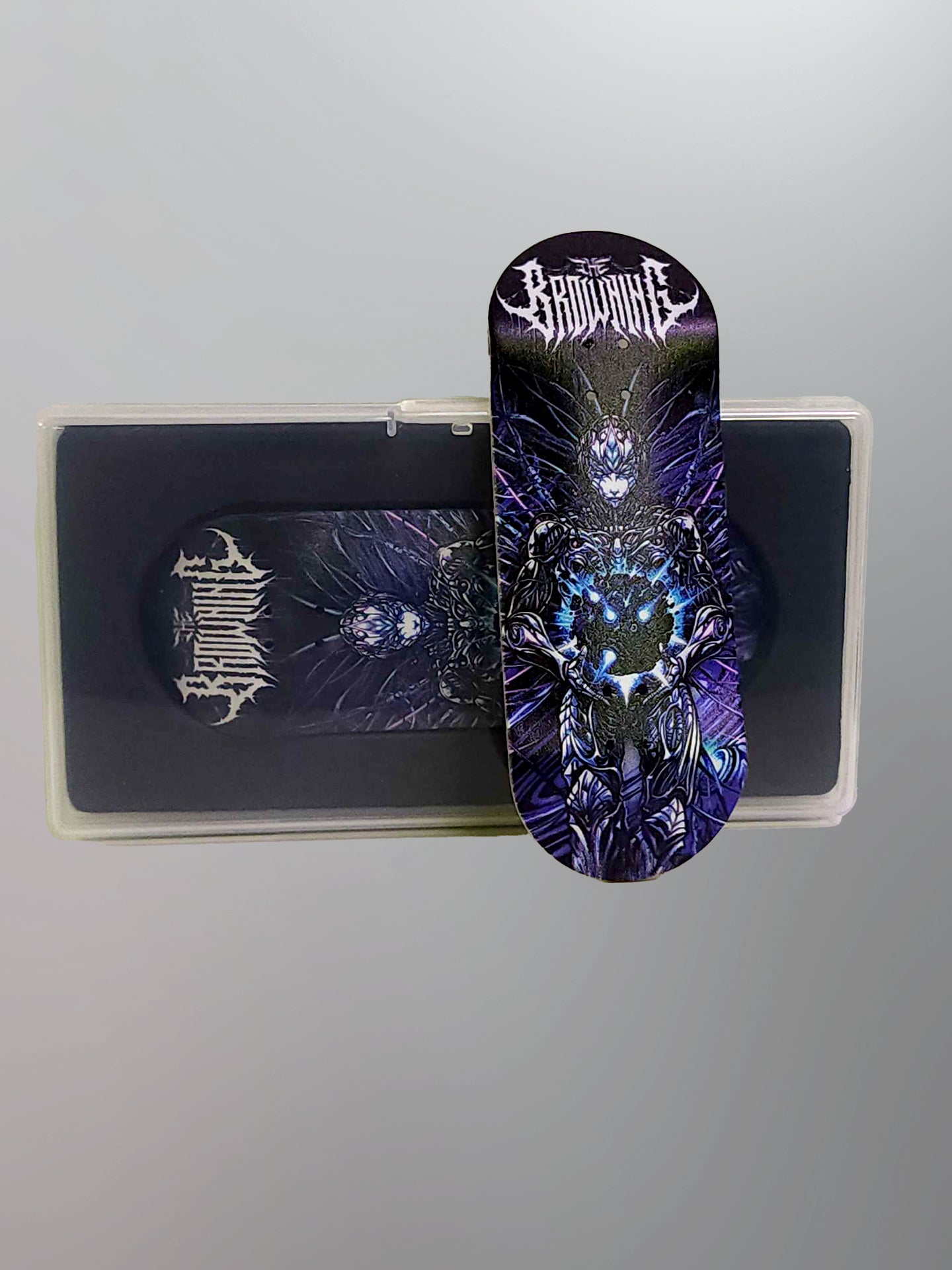 Take your setup to the next level with this premium The Browning - Burn This World [EVOLVED] fingerboard, featuring striking full-color artwork inspired by the band’s futuristic aesthetic. The deck showcases a detailed, high-impact design with deep purples and electric blues that make it just as display-worthy as it is session-ready.
